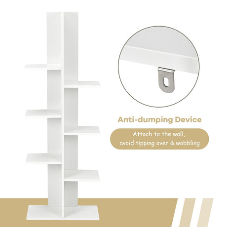 Wooden 9-Shelf Tree Magazine CD Storage Bookcase (White) (QI003457.WT)
