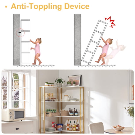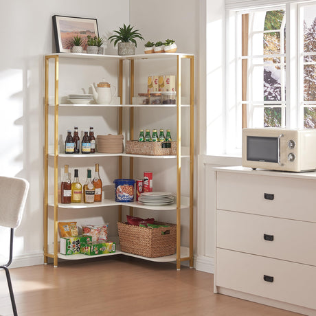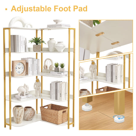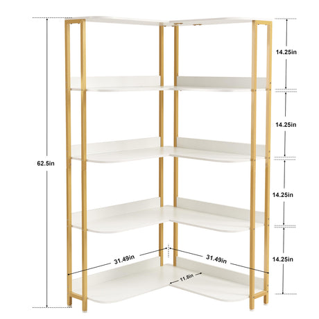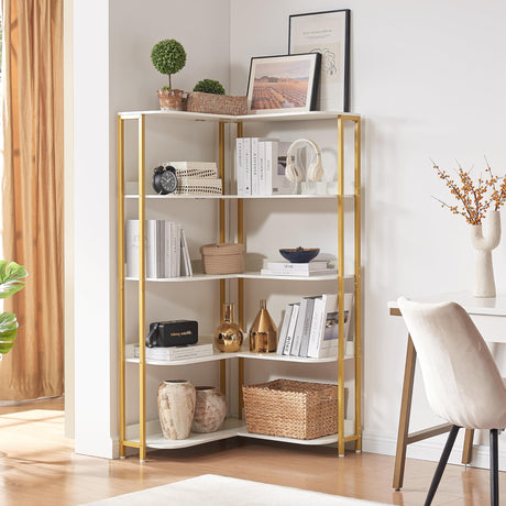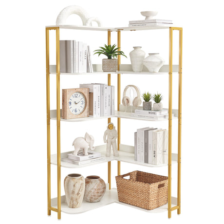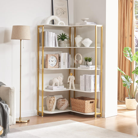 Gold L-Shaped Bookshelf, Modern Corner Bookshelf with Storage Corner