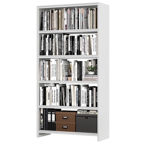 S71" Metal Bookshelf, 5 Tier White Bookshelf with Adjustable Storage Shelves