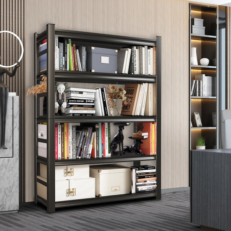 69" Tall Heavy-Duty Bookshelf, 5-Tier Metal Bookshelf with Adjustable Shelves