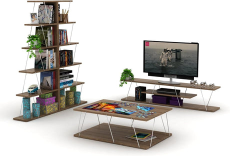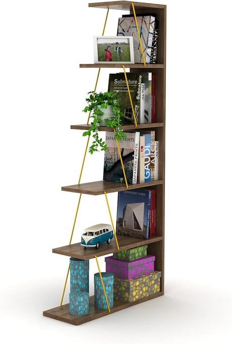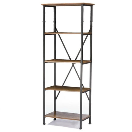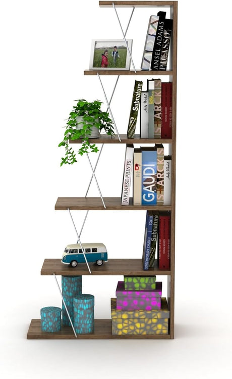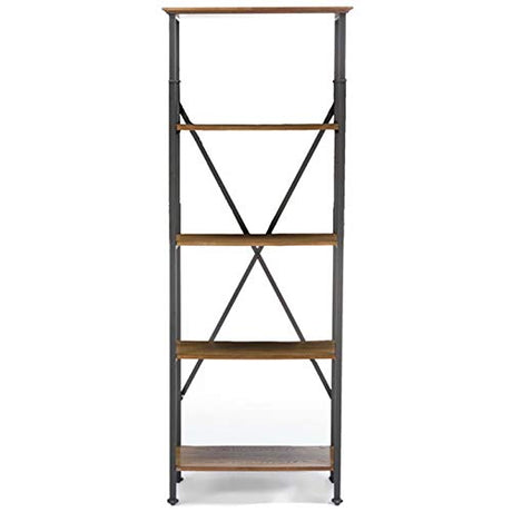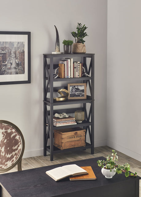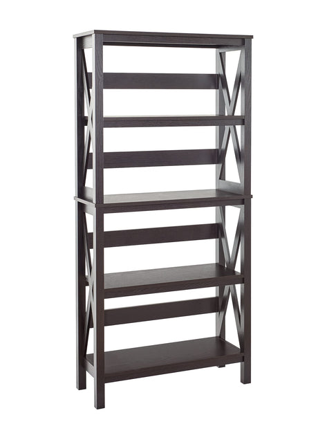 3955 X-Frame Design 5-Shelf Bookshelf or Bookcase, Black Walnut Wood