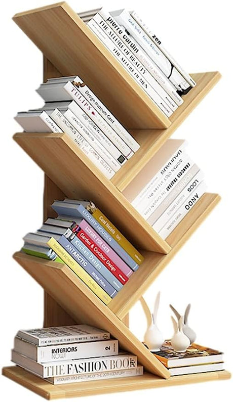 6 Tier Tree Bookshelf, Sturdy Retro Floor Standing Wood Bookcase, Storage Rack for