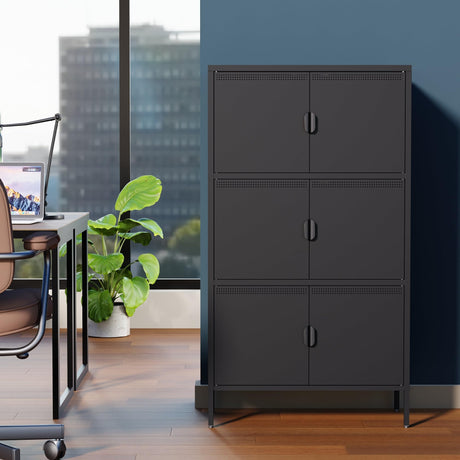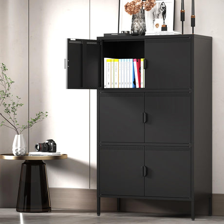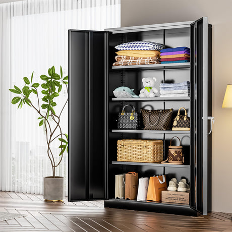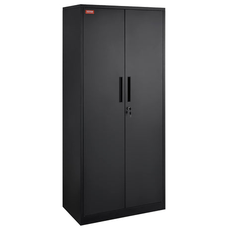 Black Metal Storage Cabinet Doors, 72" Locking Steel Storage Cabinet with Shelves