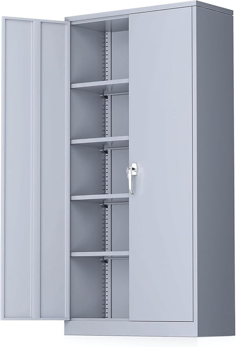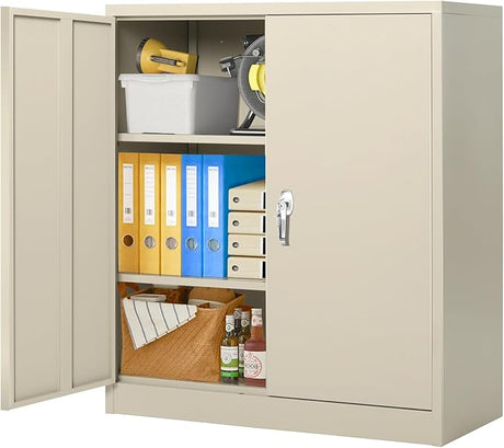 Metal Storage Cabinet, Steel Locking Storage Cabinet with 2 Magnetic Doors and