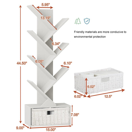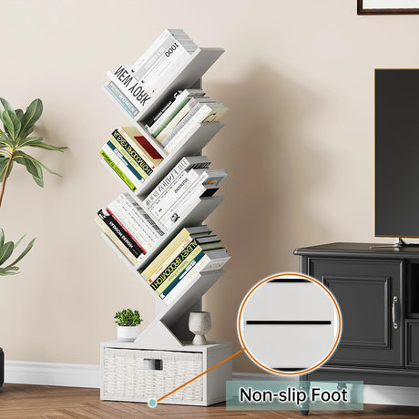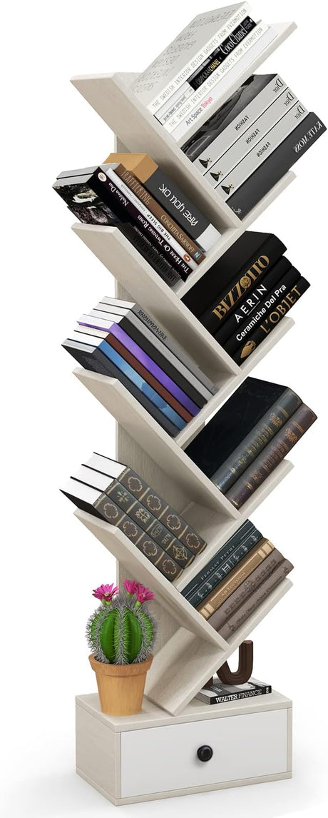 9 Tier Tree Bookshelf with Drawer Bookcase, Floor Standing Book Storage Shelf