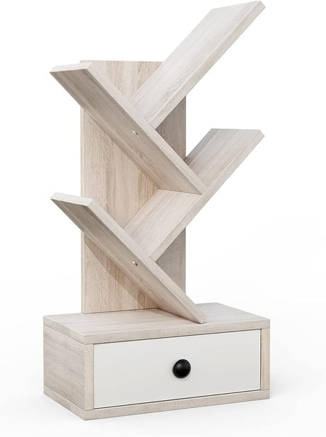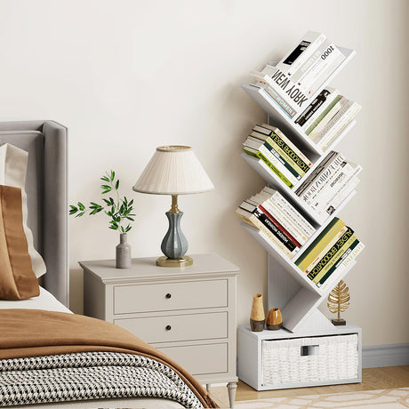 6 Tier Tree Bookshelf, Tall Bookcase with Drawer, Freestanding Book Shelf