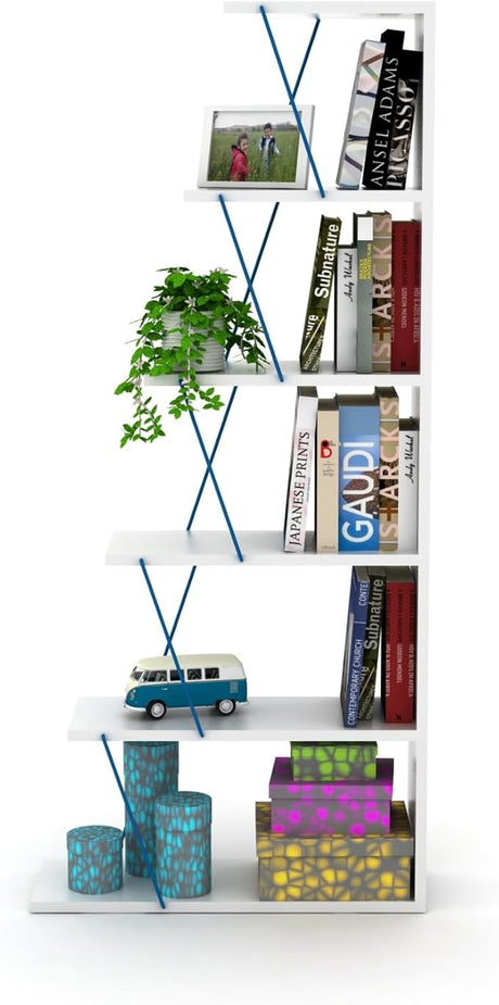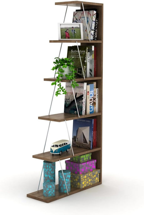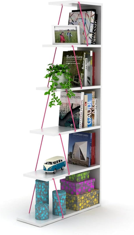 Bookshelf, 5-Tier Bookcase, Narrow Storage Rack Shelf, Tall Ladder Shelf Organizer