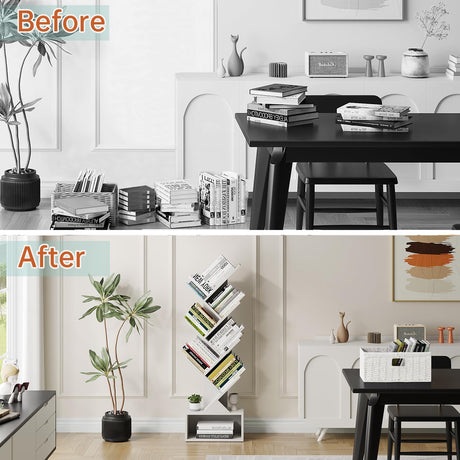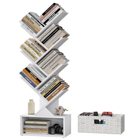 Tree Bookshelf with Storage, 8 Tier Wooden Tall Book Shelf, Floor Standing Bookcase for