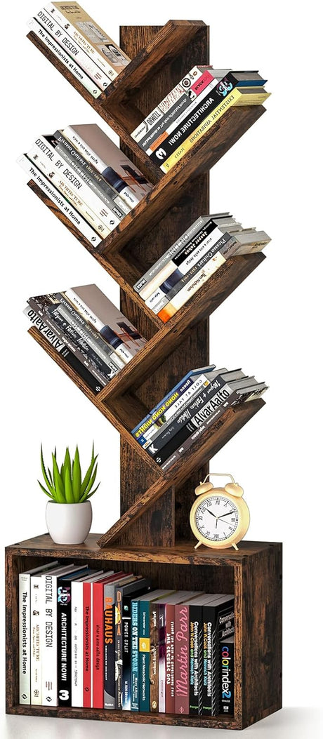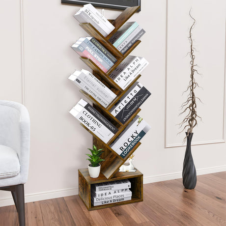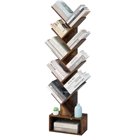 8 Tier Tree Bookshelf, Retro Floor-Standing 8 Shelf Bookcase Storage Rack