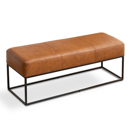 Leather Entryway Bench for Bedroom End of Bed, Modern Ottoman Bench with Faux