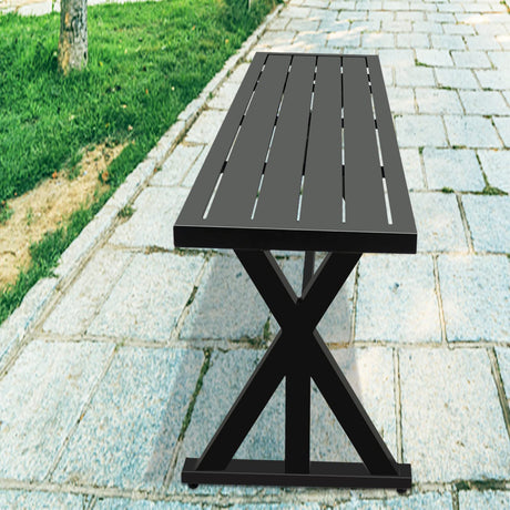 Outdoor Patio Bench Black, Garden Bench Outdoor Industrial Bench