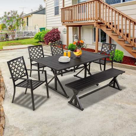 61" Patio Benches 2-3 People Dining Metal Backless Bench