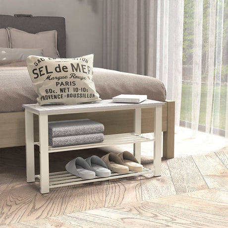 Bamboo Entryway Storage Bench with Shelves Shoe Rack Bench