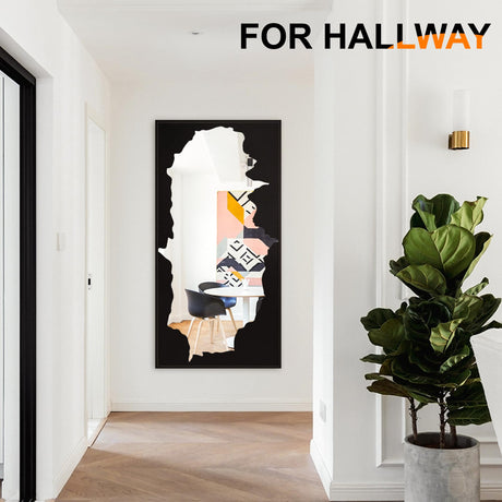 Wall Mirror, Full Length Floor Mirror, Mirror Decorative Wall Art with Geometric Graffiti