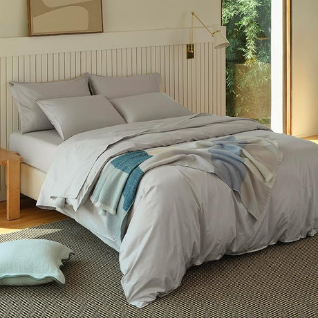 Muslin Duvet Cover Queen Size, 100% Washed Cotton Duvet Cover Set