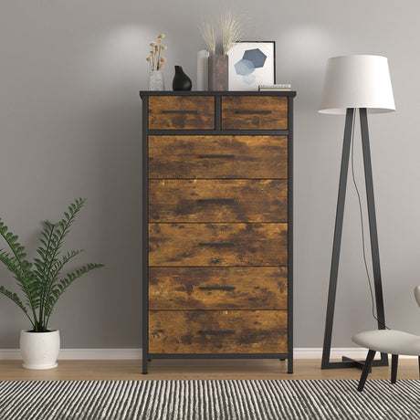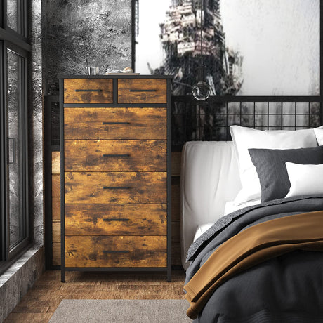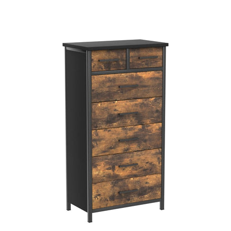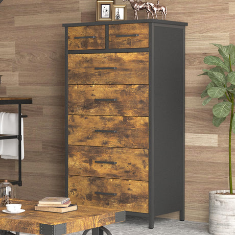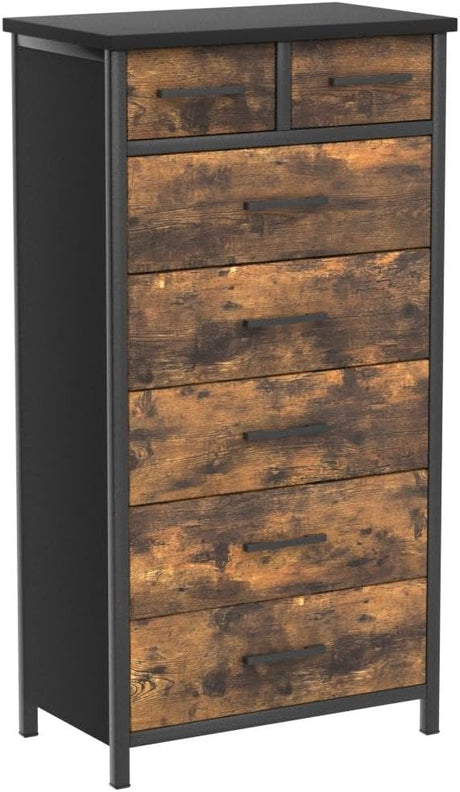7 Drawer Tall Dresser, Industrial Wood Storage Dresser Clothes Organizer, Sturdy Steel