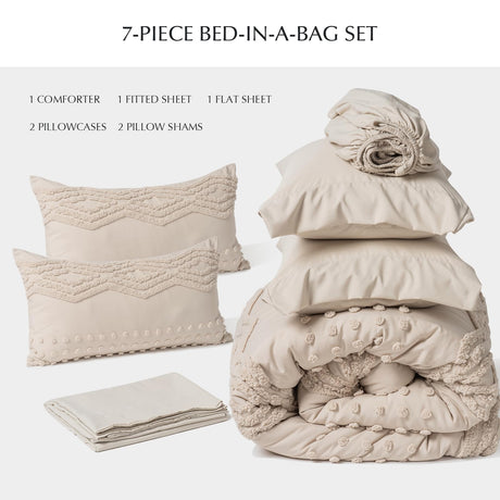 5 Piece Bed in a Bag Twin Size Comforter Set Botanical Floral Bedding Set,White Flower