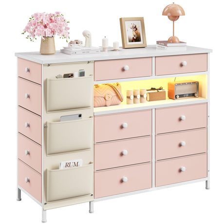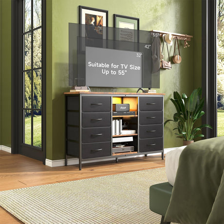 12 Drawers Dresser w/Power Outlet,Colors Lights,63In Long Dresser