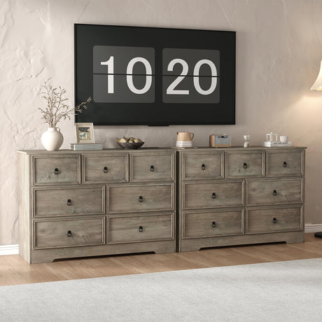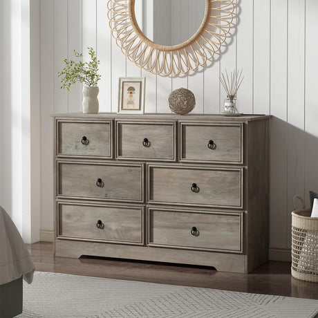 7 Drawers Dresser for Bedroom, Rustic Wood Dresser with Power Outlet, Wide Chest