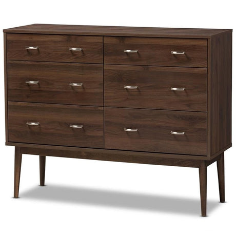 Mid-Century Modern Walnut Brown Finished 6-Drawer Dresser