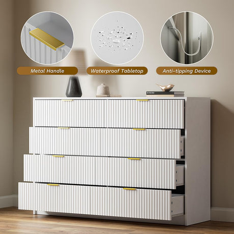 White Dresser for Bedroom, 8 Drawer Double Dresser