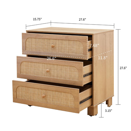 3 Drawer Dresser,Rattan Dresser for Bedroom, Mid-Century Modern Nightstands