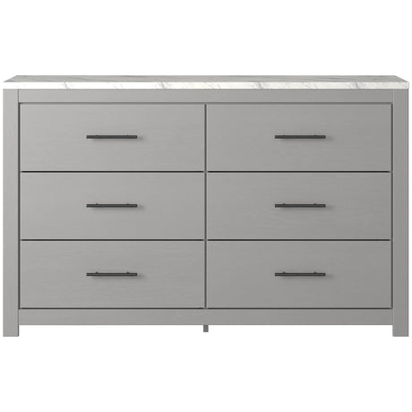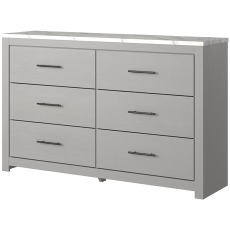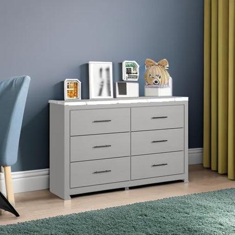 Cottonburg Modern Six Drawer Dresser with Faux Marble Top, Light Gray