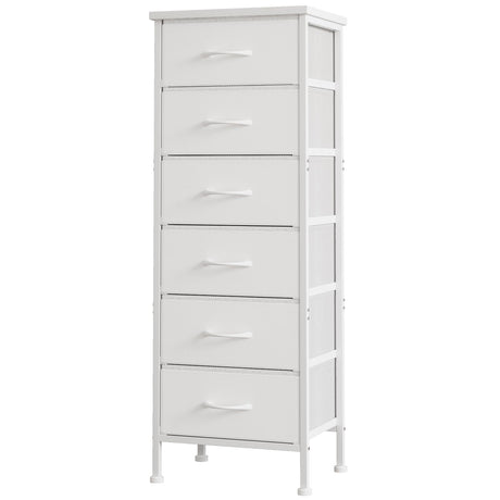 White Tall Dresser for Bedroom, Storage Dresser Organizer with 6 Fabric Drawers