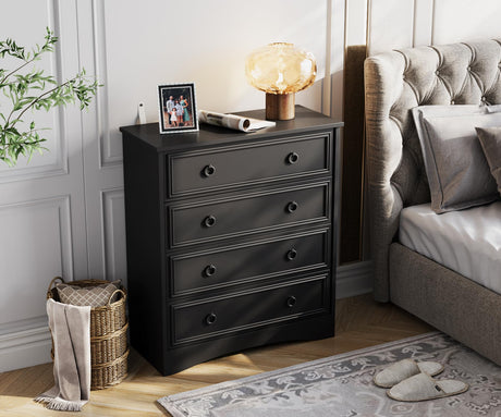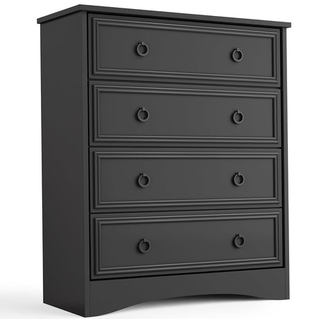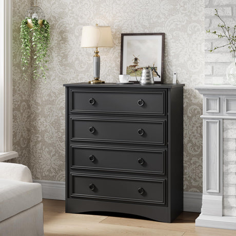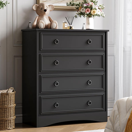 Tall Black Dresser for Bedroom, 4 Drawer Wood Dresser for Closet, Modern Chest of Drawers