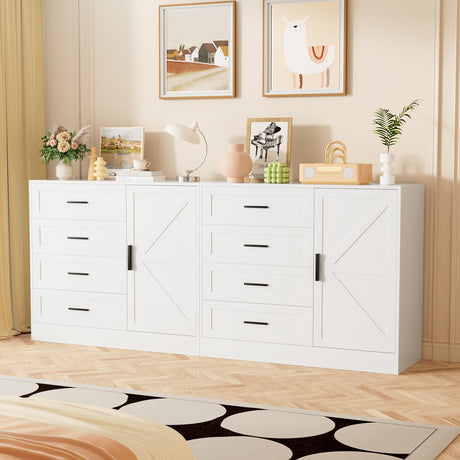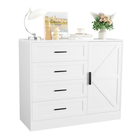 4 Drawer Dresser with Barn Door, Wooden Storage Cabinet with Drawers and Shelves