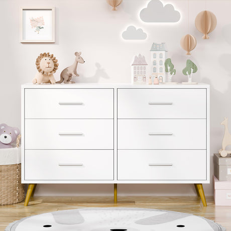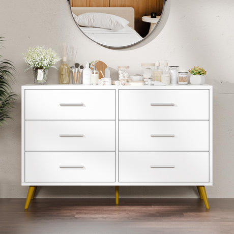 6 Drawer Dresser White Double Dresser for Bedroom, Modern Chest of Drawers TV Stand