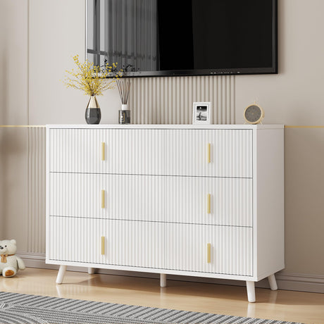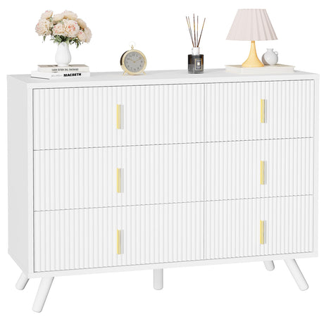 White Dresser for Bedroom, 6 Drawer Dresser Chests of Drawers with Waveform Fluted Panel