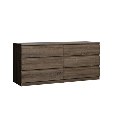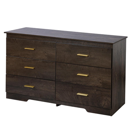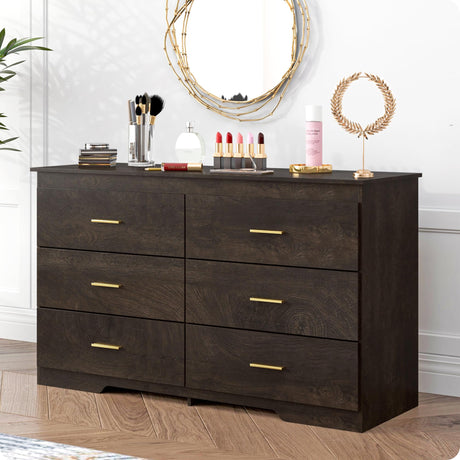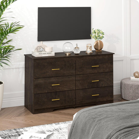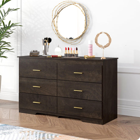 6 Drawer Dresser for Bedroom- Dark Brown Wood Dresser Chest - 47 Inch Wide Double