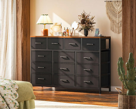 Dresser for Bedroom with Charging Station, 57" Long Dresser with 13 Storage Drawers