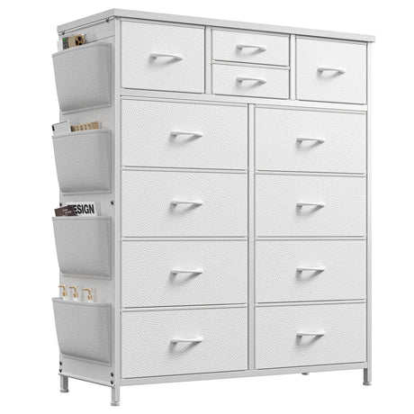 White Dresser with 12 Drawers, Tall Dresser for Bedroom, Chests of Drawers with Side Pockets