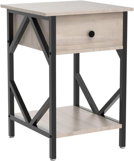 Set of 2 Industrial Wood Nightstand, Accent End Table with Drawer and Shelf