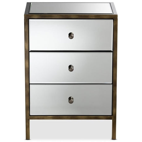 Nouria Modern and Contemporary Hollywood Regency Glamour Style Mirrored 3-Drawer