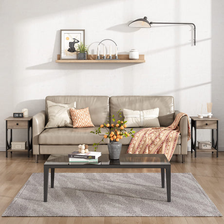 Farmhouse Nightstand with Storage Drawers and Open Shelf, Small End Tables Living Room,