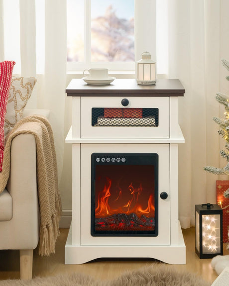 White LED Nightstand Farmhouse Side Table for Living Room Fireplace Night Stand
