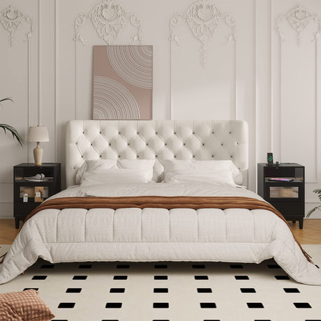 Night Stand Set of 2, Bedside Tables with Charging Station
