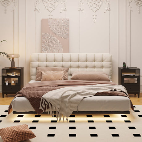 Night Stand with Charging Station, Nightstands with 3 Color LED Lights, Side Table with 2