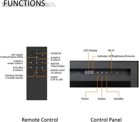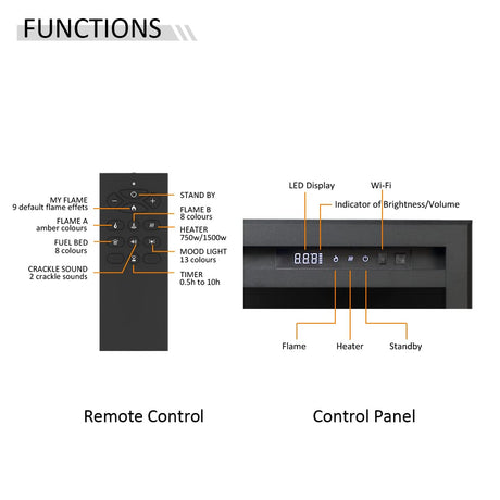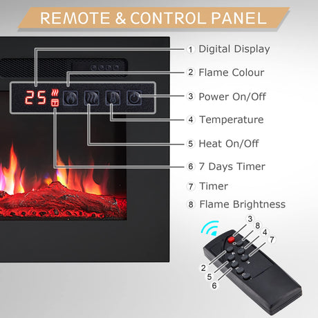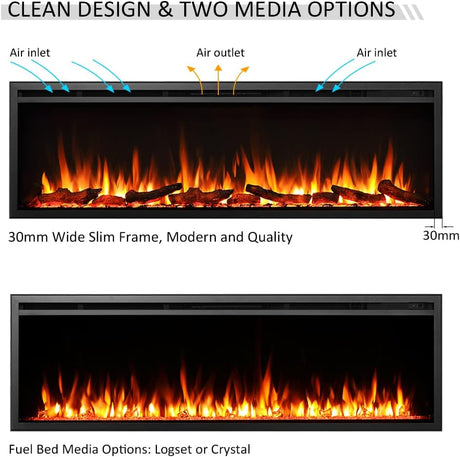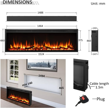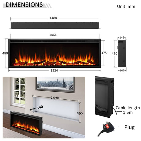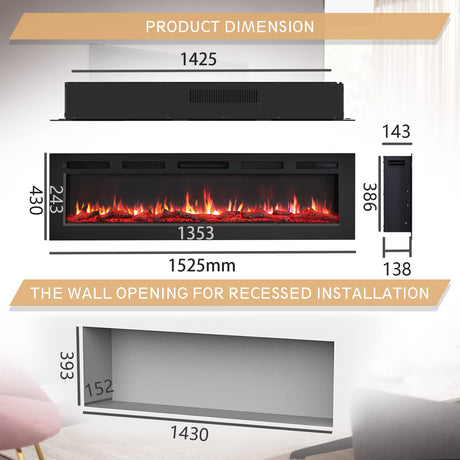 Wilton 60"/152cm Electric Fireplace, Wall Mounted, Recessed, 9 Colour Flame Effect