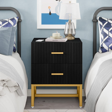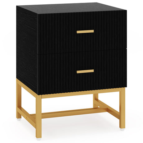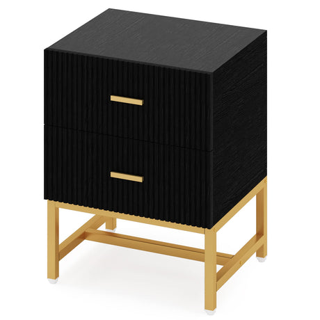 Modern Nightstand with 2 Big Striped Drawers, Tall Bed Side Table Wood Metal End Table