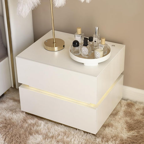 Modern White Smart LED Night Stand with Wireless Charging Station
