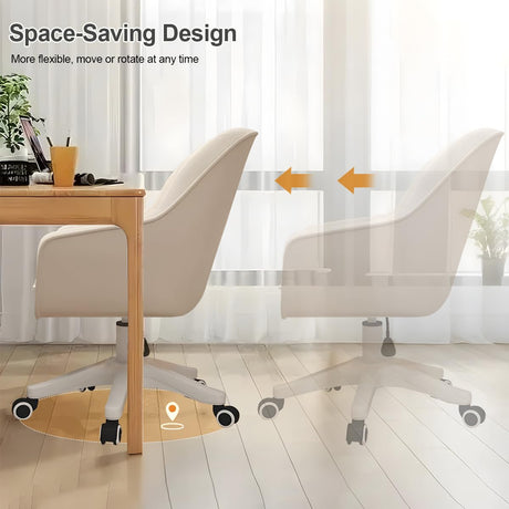White and Gold Home Office Chair, Comfy Swivel Leather Desk Chair with Wheels and Armrests