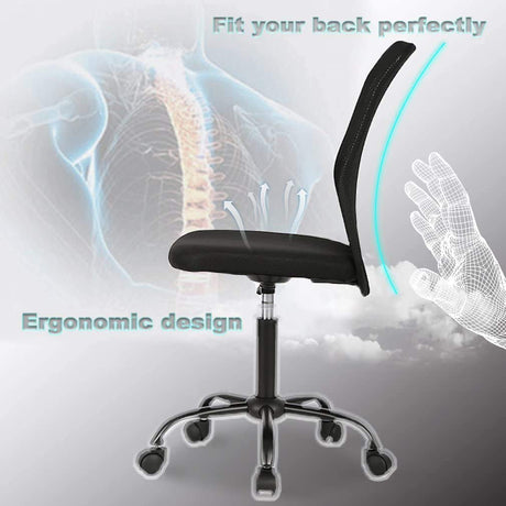 Armless Home Office Desk Chair -Small Ergonomic with Low Back Lumbar Support