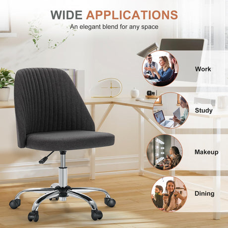 Armless Office Chair, Vanity Chair with Back and Wheels, Comfortable Office Chair in