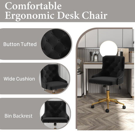 Velvet Home Office Desk Chairs, Modern Gold Task Chair with Wheels for Office