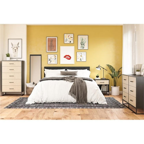 Nightstand with Charging Station, Black Night Stand with Drawers, End Tables Bedroom