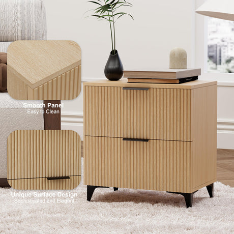 Wooden Nightstand Mid-Century End Side Table Bedroom W/2 Storage Drawers Natural